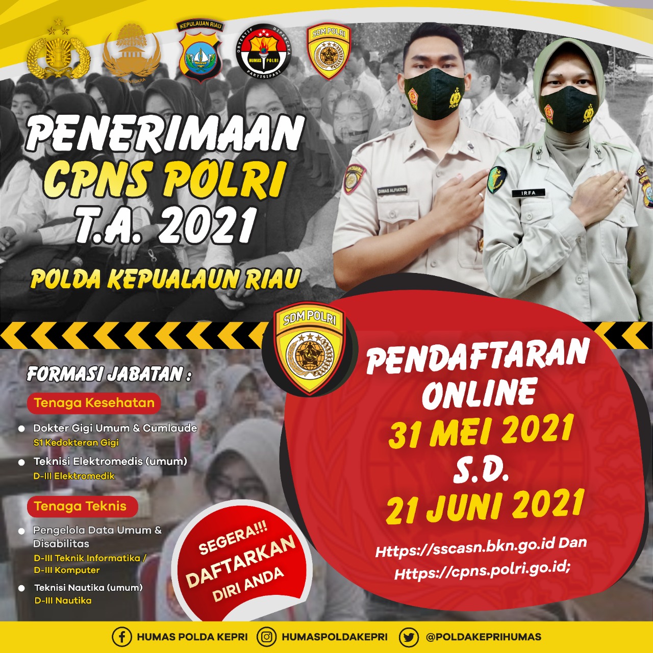 Polda Kepri membuka penerimaan kepada Warga Negara Republik Indonesia untuk menjadi Calon Pegawai Negeri Sipil (CPNS) pada Polri. Rabu (2/6/2021).
