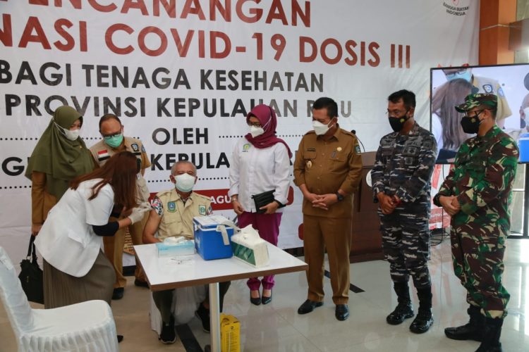 POJOKTIMES.COM – Gubernur H Ansar Ahmad mencanangkan vaksinasi Covid-19 dosis ketiga untuk tenaga kesehatan. Sebanyak 11.556 tenaga kesehatan di Kepri, mulai mengikuti penyuntikan vaksin dosis ketiga ini.