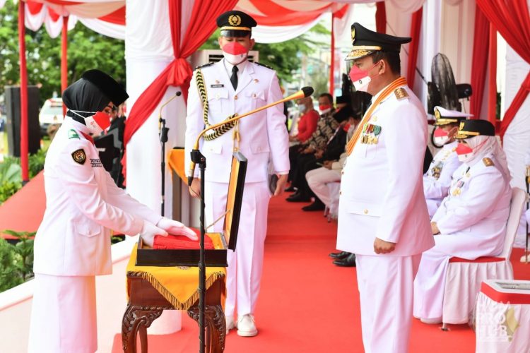 POJOKTIMES.COM – Gubernur H. Ansar Ahmad bertindak sebagai Inspektur Upacara pada Upacara Bendera Peringatan HUT Ke 76 Kemerdekaan RI Tingkat Provinsi Kepri Tahun 2021 dari Halaman Gedung Daerah Provinsi Kepri Tanjungpinang, Selasa (17/8). Upacara ini dilaksanakan secara luring dan daring lantaran pandemi Covid-19 yang masih melanda dan dimulai pukul 07.30 pagi.