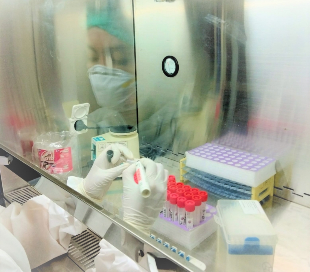 Kami memeriksa tidak satu persatu sampel melainkan sekaligus dengan minimal 22 sampel, maksimum 94 sampel dalam 1 kali pemeriksaan. Dan untuk mengetahui ada tidaknya sampel yang harus diulang pemeriksaannya pun di akhir proses amplifikasi.