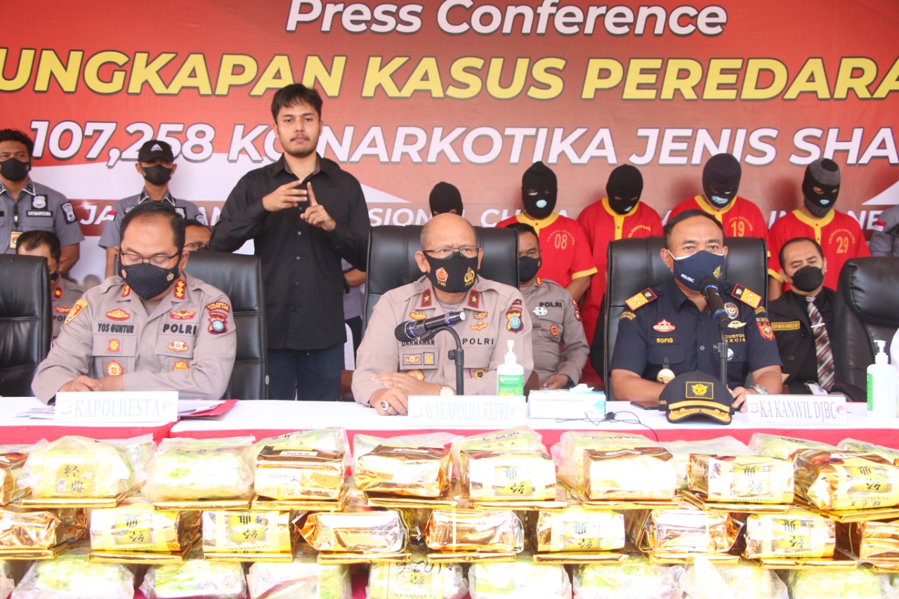 Jika barang bukti tersebut beredar di pasaran bisa dikonsumsi sekitar 321.774 s/d 429.000 jiwa. Dengan disitanya barang bukti tersebut bisa menyelamatkan sekitar 321.774 s/d 429.000 jiwa penduduk,” Ungkap Wakapolda Kepri dalam konferensi pers di Polresta Barelang.