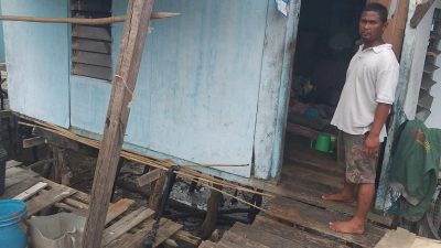 Rumah itu sudah sangat lapuk, pelantar dari dermaga beton ke rumah orang tua Rudi sudah tak nyambung lagi, papan kayu atasnya berlepasan, karena lapuk dan patah. Tonggaknya pun sebagian entah kemana.
