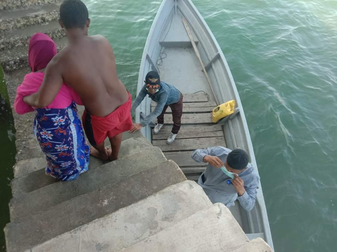 Sedang kami kasak kusuk mencari minyak premium, ustadz Hakim dari Bertam menghubungi. Orang dari kelurahan sudah datang ke Bertam, mereka bilang ambulance laut dari puskesmas akan segera datang. Jadi pak Imbalo sepertinya tak payah nak datang lagi ke Bertam. Mereka saja yang ngurus. kata Ustadz Hakim.