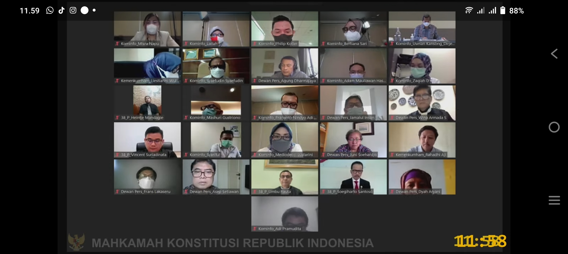 Demikian disampaikan oleh Direktur Jenderal Informasi dan Komunikasi Publik Kementerian Kominfo Usman Kansong dalam sidang pengujian Undang-Undang Nomor 40 Tahun 1999 tentang Pers (UU Pers), pada Senin (11/10/2021) secara daring di Ruang Sidang Pleno MK.