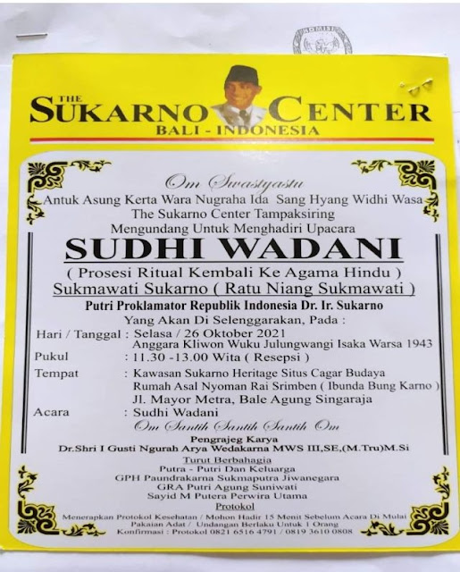 POJOKTIMES.COM – Putri proklamator Sukarno, Sukmawati Soekarnoputri bakal menjalani ritual pindah agama dari Islam ke Hindu.