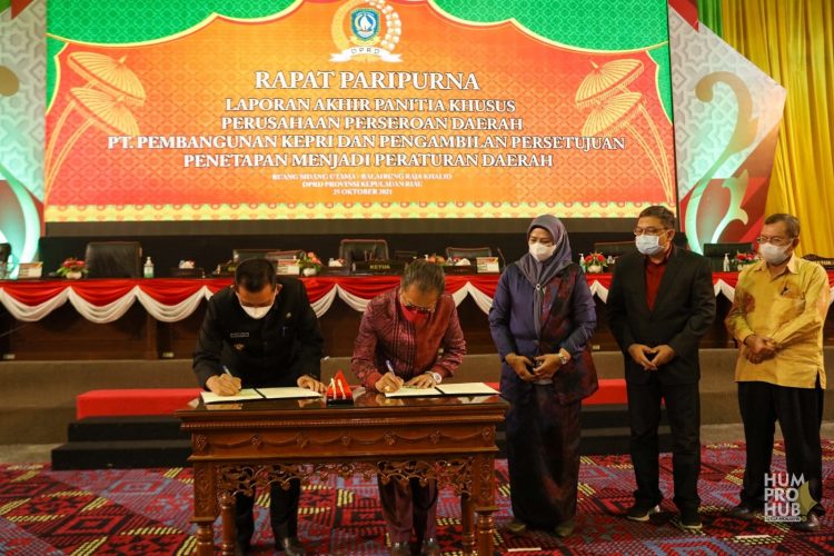 Hal ini tertuang juga dalam Keputusan DPRD Kepri nomor 21 tahun 2021 tentang Persetujuan Penetapan Ranperda tentang Perusahaan Perseroan Daerah PT. Pembangunan Kepri menjadi perda.
