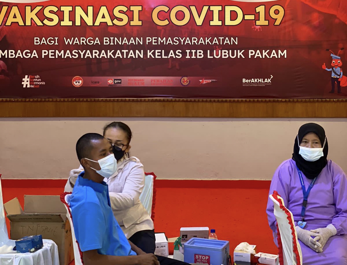 POJOKTIMES.COM – Sebanyak 672 warga Binaan Pemasyarakatan (WBP) Lapas Kelas IIB Lubuk Pakam menjalani vaksinasi covid-19, Rabu (27/10). Proses pemberian vaksin merupakan dosis kedua bagi ratusan narapidana.