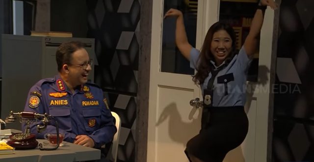 Andre Tulani, Wendi, dan Surya, yang berada di ruangan bersama Anies berakting ‘takut’ mendengar pertanyaan Kiky.