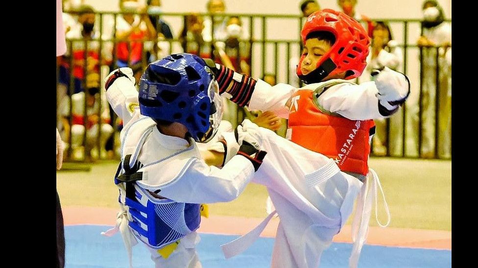 “Baru sabuk putih, baru banget. Baru pertama bertanding juga, tadi lawannya saja sabuk kuning,” katanya.