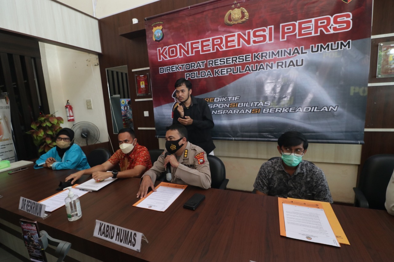 Hal tersebut disampaikan oleh Kabid Humas Polda Kepri Kombes Pol Harry Goldenhardt S., S.IK., M.Si, didampingi Dir Reskrimum Polda Kepri Kombes. Pol. Jefri Ronald Parulian Siagian, S.I.K., M.Si., Kasubdit IV Dit Reskrimum Polda Kepri AKBP Achmad Suherlan, S.Ik, Pendamping UPTD PPA Provinsi Kepri Tetmawati Lubis dan Ketua KPPAD Batam Abdillah, SE, MM, saat Konferensi Pers di Polda Kepri. Jumat (19/11/2021).