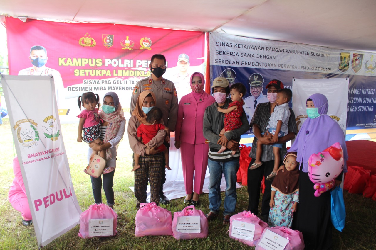 Berkenaan dengan peran ketahanan pangan dalam percepatan penurunan stunting di kabupaten Sukabumi menuju zero new stunting 2022, Setukpa Lemdiklat Polri dengan dikomandoi oleh Kasetukpa Brigjen Pol Mardiaz turut serta membatu program tersebut dengan menyerahkan bantuan paket beras nutrizing dan nutrisi gizi lainnya sebanyak 265 paket dan kedepannya Setukpa menjadi orang tua asuh anak- anak stunting tersebut sehingga target pemenuhan gizi dapat tercapai.