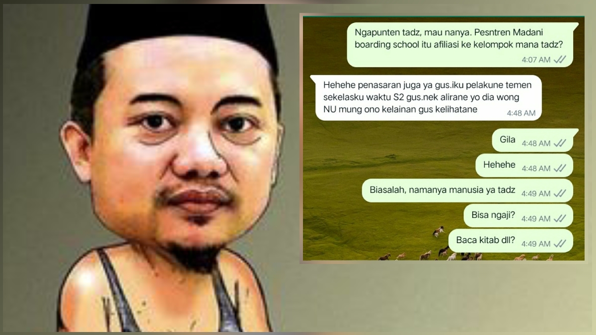 “Hehehe penasaran juga ya gus. Iku pelakune temen sekelasku waktu S2 Gus. Nek alirane yo dia wong NU mung ono kelainan gus kelihatane,” jawab Ustad Kris dengan bahasa Jawa.