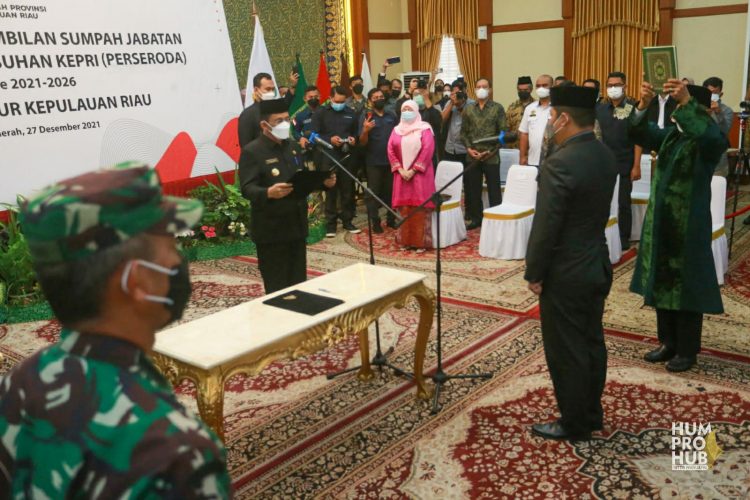 POJOKTIMES.COM | Tanjungpinang – Gubernur Kepulauan Riau (Kepri) H. Ansar Ahmad resmi melantik dan mengambil sumpah jabatan Awaluddin sebagai direktur PT Pelabuhan Kepri (Perseroda) di Gedung Daerah, Tanjungpinang, Senin (27/12). Awaluddin akan menjabat sebagai direktur PT Pelabuhan Kepri mulai dari 23 Desember 2021 sampai 22 Desember 2026.