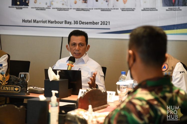 POJOKTIMES.COM | Batam – Gubernur Kepulauan Riau (Kepri) H.Ansar Ahmad menggelar rapat koordinasi (Rakor) penanganan kedatangan PMI menjelang tahun baru 2022 di Provinsi Kepri bersama Deputi III Badan Nasional Penanggulangan Bencana (BNPB RI) Mayjen TNI Fajar Setyawan dan Deputi V BNPB Zaherman Muabe. Rakor juga menghadirkan seluruh pimpinan Forkopimda Kepri dan pejabat instansi terkait lainnya.