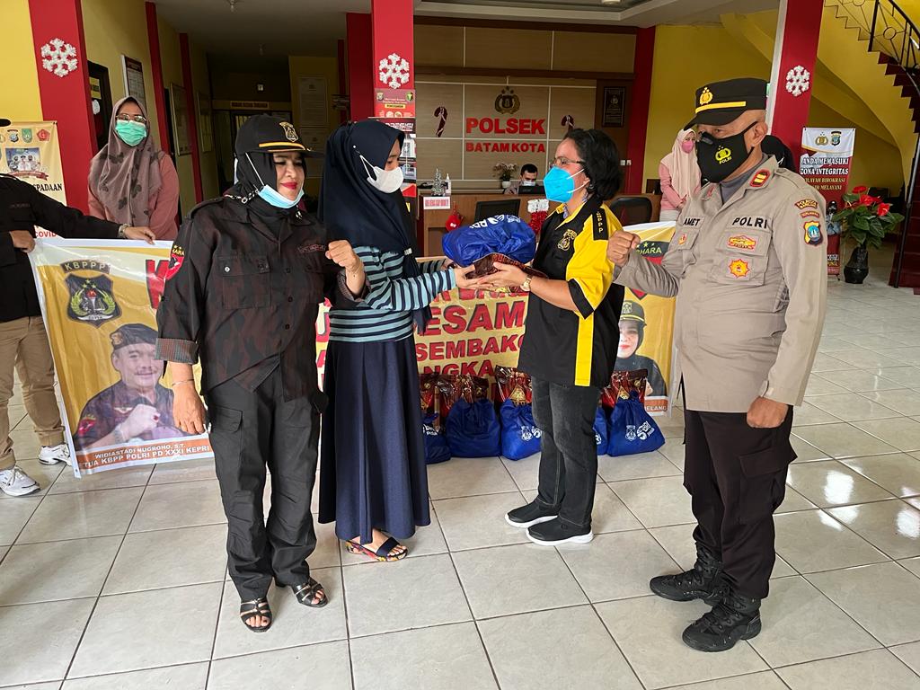 Kapolsek Batam Kota Kompol Nidya Astuty W, SIK Mengtakan Kegiatan Pembagian Paket Sembako ini dilaksanakan Dalam Rangka Acara Pelantikan Pengurus Keluarga Besar Putra Putri Polri Polresta Barelang.