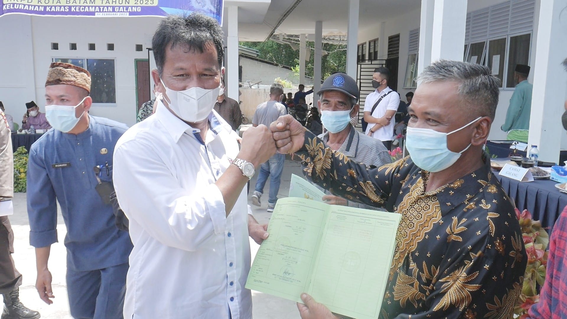 Kemudian, dalam kesempatan itu Pemko Batam bersama Badan Pertanahan Nasional (BPN) Batam menyerahkan langsung 250 sertifikat lahan untuk masyarakat Kelurahan Karas.