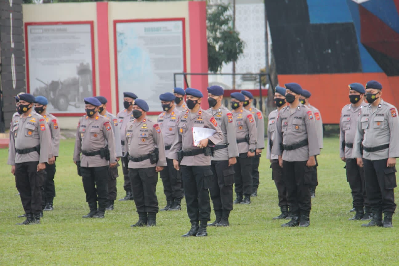 POJOKTIMES.COM | Medan – Komandan Satuan Brimob Polda Sumut Kombes Pol Christiyanto Goetomo, S.I.K.,S.H.,M.H. pimpin apel gabungan personil Brimob sekaligus ucapkan terima kasih kepada personil atas pelaksanaan tugas, Senin (7/2/22).