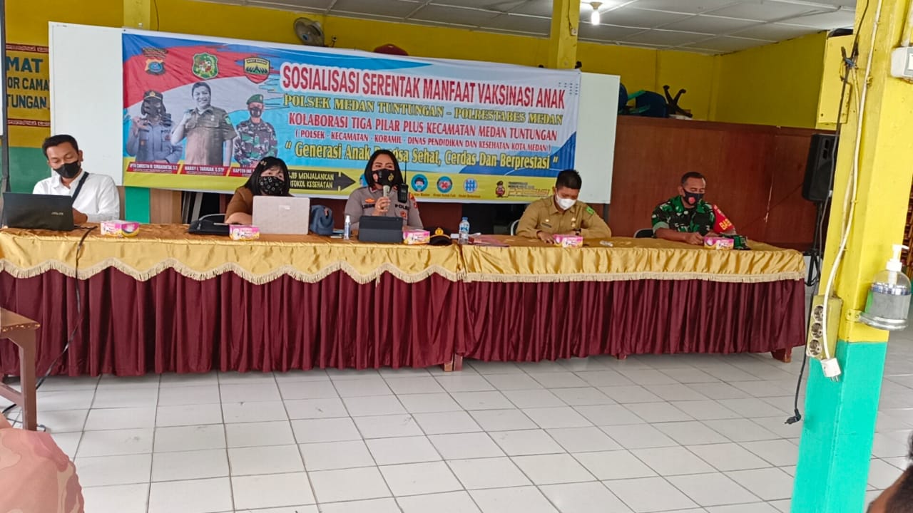 Seperti yang dilakukan oleh Polsek Tuntungan yang melaksanakan Sosialisasi Serentak Manfaat Vaksinasi Anak 6-11 tahun se-Kecamatan Medan Tuntungan yang dilaksanakan di Aula Kantor Camat Medan Tuntungan Jalan Bunga Melati No 1 Kelurahan Kemenangan Tani Kecamatan Medan Tuntungan dan diikuti oleh seluruh Kepala Sekolah SD Negeri maupun Swasta dan Perwakilan para orang tua murid, Selasa (8/2/2022) sekira pukul 09.00 wib.
