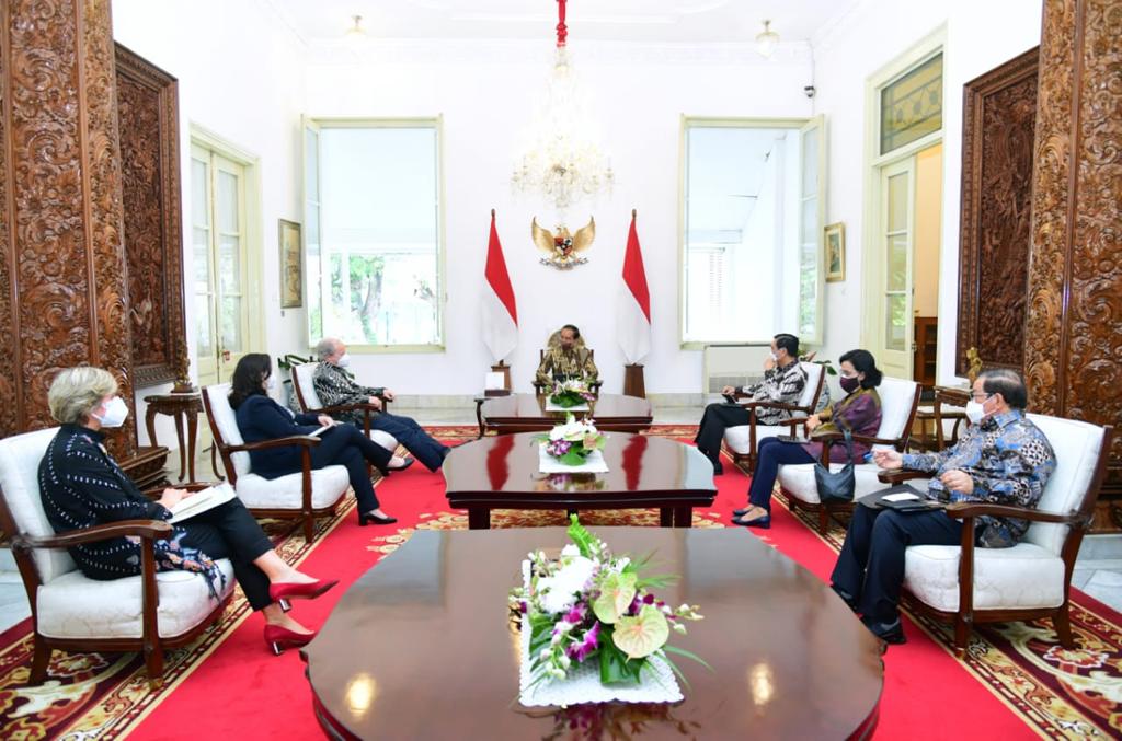 POJOKTIMES COM | Jakarta – Presiden RI Joko Widodo (Jokowi) menerima sejumlah pimpinan Bank Dunia di Istana Merdeka, Jakarta, Rabu (16/02/2022). Mereka adalah Axel Van Trotsenburg selaku Managing Director of Operations, Manuela V. Ferro selaku Vice President East Asia and Pacific Region, serta Satu Kahkonen selaku Country Director Indonesia.