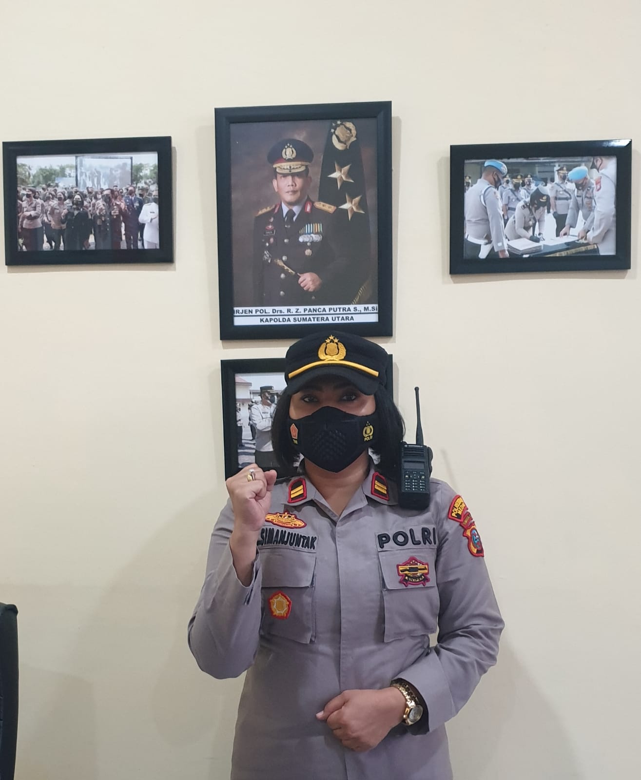 Kapolsek Medan Tuntungan Iptu Christin Simanjuntak menghimbau agar masyarakat kecamatan Medan Tuntungan selalu meningkatkan kewaspadaan kapanpun dan dimanapun berada, Selasa (22/2/2022).