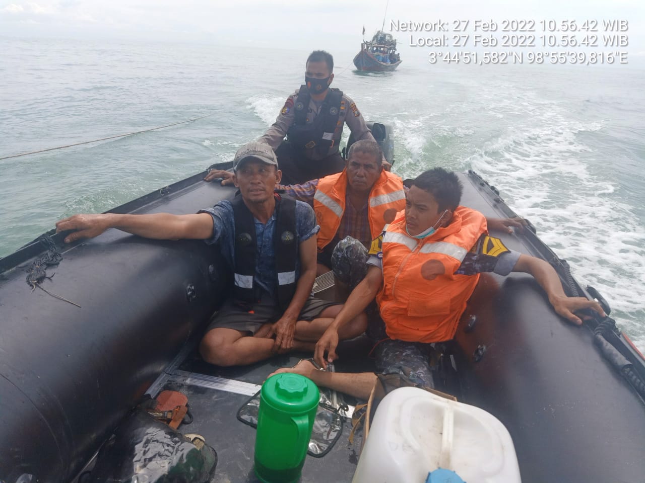 POJOKTIMES.COM | Deli Serdang – Setelah dilakukan pencarian nelayan Belawan yang kapalnya karam di Perairan Gudang Arang Belawan oleh Tim Bakamla, Polairud dan Basarnas ditemukan 2 nelayan dalam keadaan selamat, Minggu (27/2/2022) Sekira Pukul 11.00 WIB.