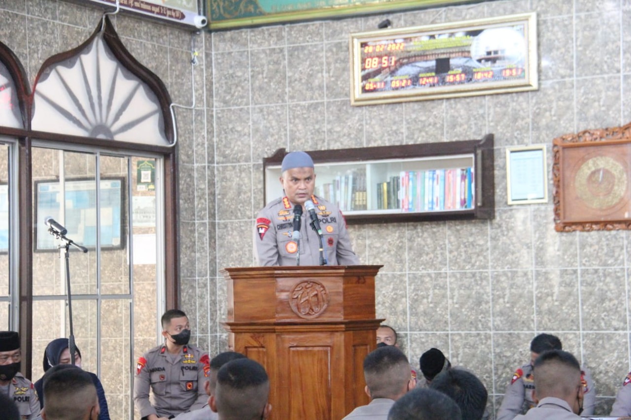 Bertempat di Masjid Nurul Huda Mako Sat Brimob Polda Sumut, Dansat Brimob Polda Sumut Kombes Pol Christiyanto Goetomo, S.I.K.,S.H.,M.H. pimpin kegiatan dan sebagai penceramah Ust. Zainuri,S.Ag.,M.A.
