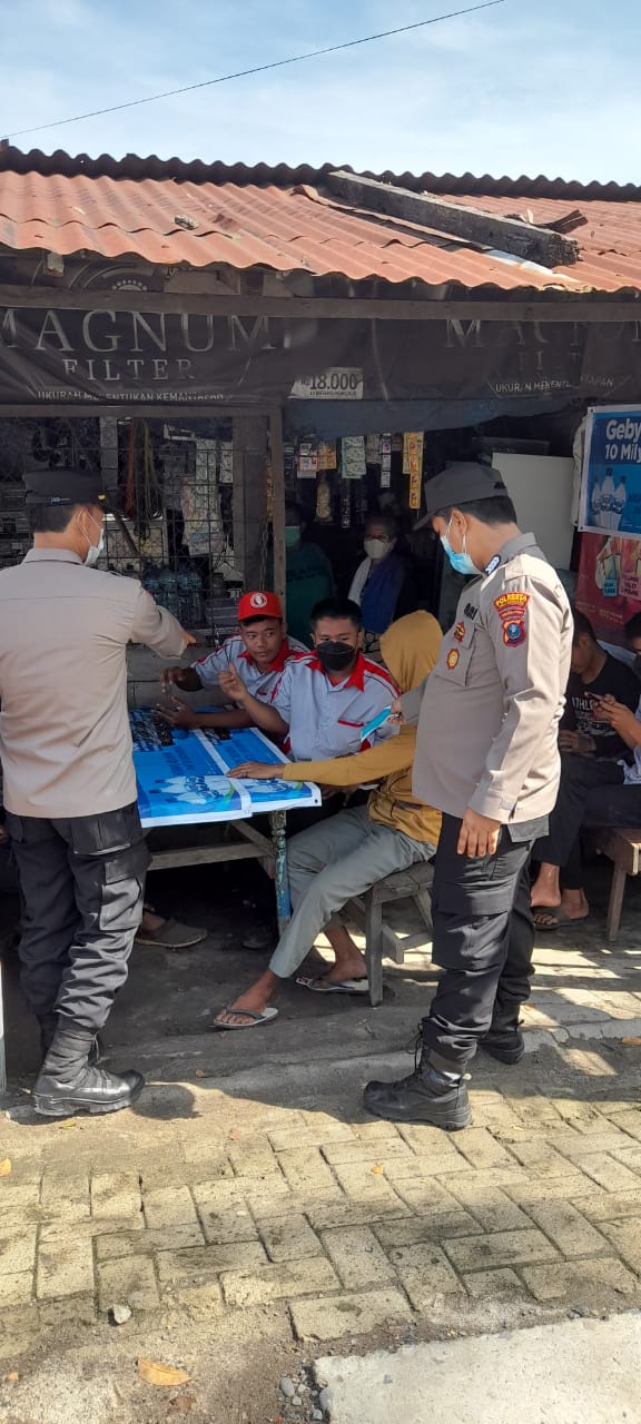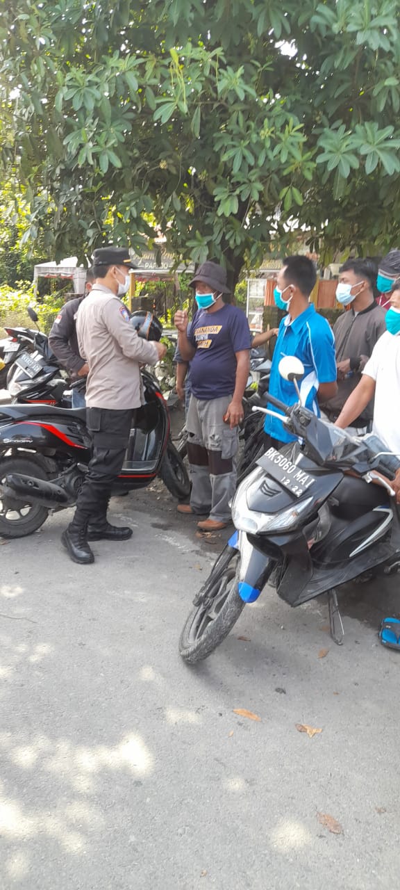 Petugas juga sekaligus menghimbau kepada para tokoh dan warga msyarakat untuk membantu program pemerintah dalam pencegahan penyebaran Virus Covid-19 serta membagikan masker dalam upaya pencegahan penyebaran virus Covid 19 Varian baru dan Prosedur Standard Adaptasi kebiasaan baru yaitu 5 M.