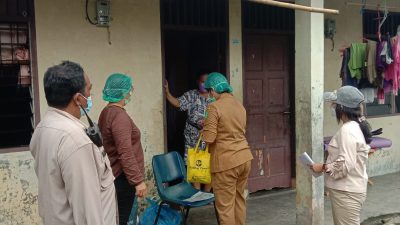 POJOKTIMES.COM | Medan – Personel Bhabinkamtibmas Polsek Medan Tuntungan bersama tiga pilar melakukan pemeriksaan dini (testing), pelacakan (tracing), dan perawatan (treatment) (3T) terhadap korban covid-19, Selasa (1/3). Korban bernama Sukardi (44) warga Irigasi Lingkungan V, Kelurahan Mangga, Kecamatan Medan Tuntungan.