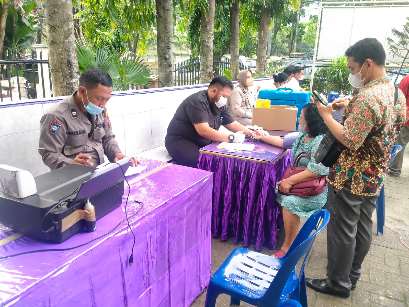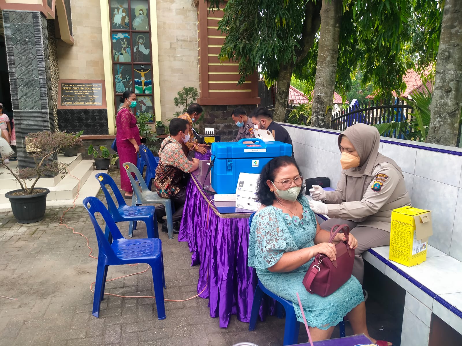 “Ya kita melakukan vaksinasi di Gereja GBKP RG Benar Meriah hari ini, 60 masyarakat mengikuti,”kata Kapolsek Medan Tuntungan Iptu Christin Simanjuntak kepada wartawan, Minggu (6/3/22).