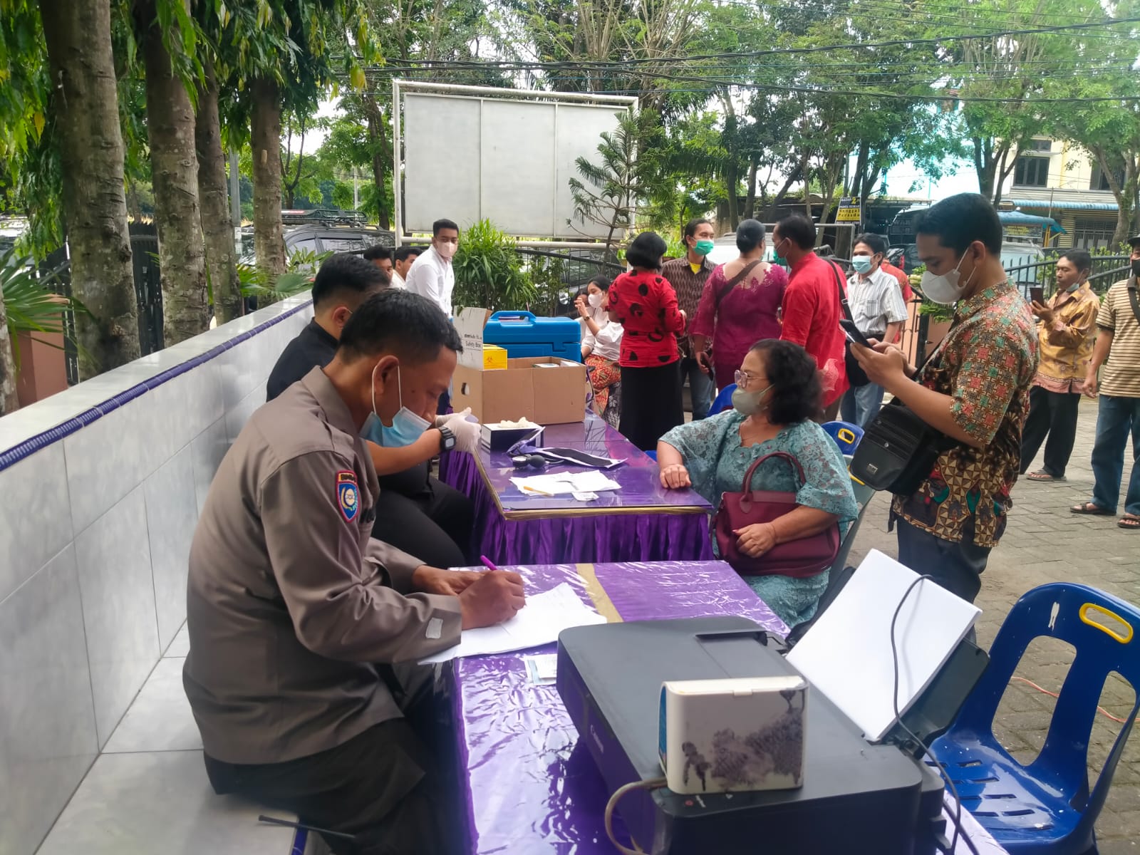 POJOKTIMES.COM | Medan – Polsek Medan Tuntungan melaksanakan vaksinasi jenis astra zeneca di Gereja GBKP RG Benar Meriah, Kelurahan Tanjung Selamat, Kecamatan Medan Tuntungan, Minggu (6/3). Dalam kegiatan ini sebanyak 60 masyarakat mengikuti vaksinasi, masing-masing vaksin 1,2 dan 3.