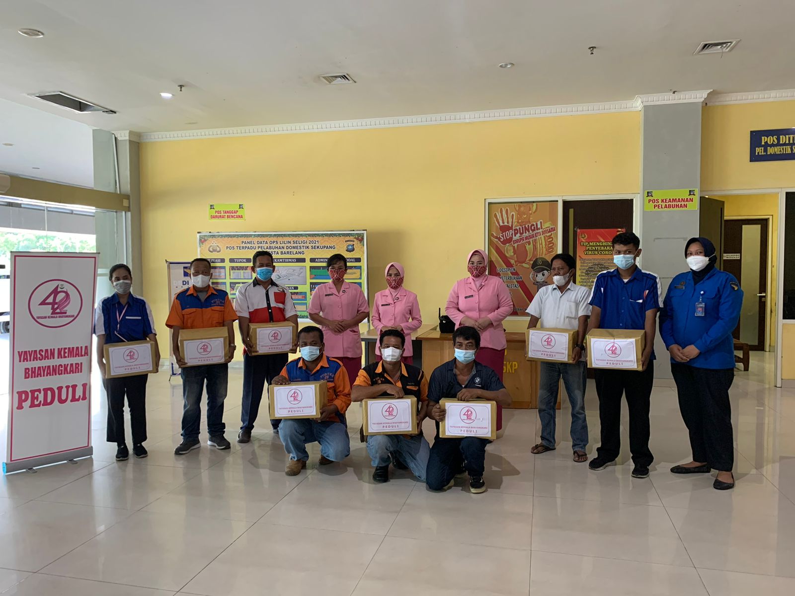 Bertempat di Pelabuhan Domestik Sekupang Kota Batam, Ibu Ketua Bhayangkari Ranting Kawasan Pelabuhan Ny. Cantik Yusriadi Yusuf Beserta Rombongan Bhayangkari Ranting Kawasan Pelabuhan Batam membagikan Paket Sembako yang diberikan kepada Porter dan Supir Taxi Kawasan Pelabuhan Domestik Sekupang.