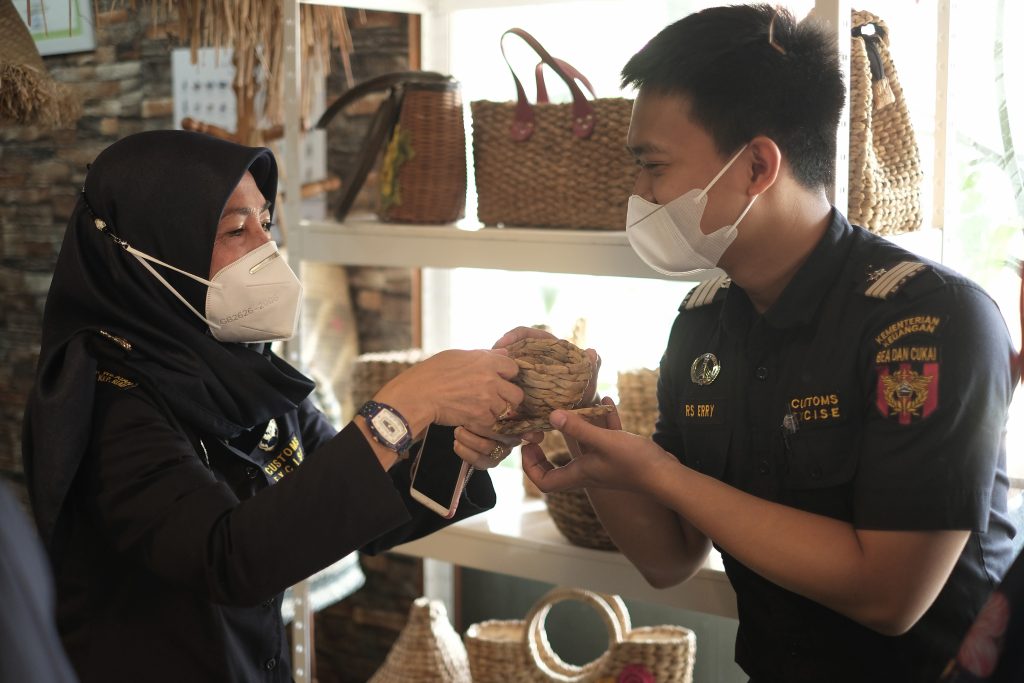 POJOKTIMES.COM | Batam – Bea Cukai Batam melaksanakan kegiatan Customs Visit Customer ke salah satu Usaha Mikro Kecil Menengah (UMKM) yaitu Isna Puring. UMKM tersebut bergerak di bidang kerajinan tangan yang terbuat dari eceng gondok pertama di Kepulauan Riau. Penjualan produk hasil kerajinan tangan Isna Puring tembus hingga ke pasar mancanegara seperti Singapura, Malaysia, Belgia, dan Jepang.