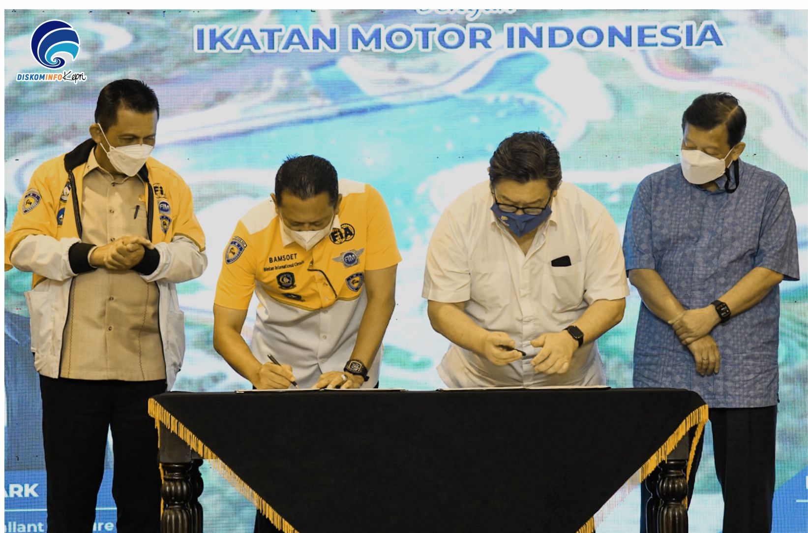 Penandatanganan dilakukan Ketua Umum IMI Bambang Soesatyo dan CEO of Gallant Venture Pte Ltd Eugene Cho Park yang disaksikan Gubernur Kepri H. Ansar Ahmad di hotel Nirwana Gardens, Lagoi, Bintan, Kamis (17/03/2022).