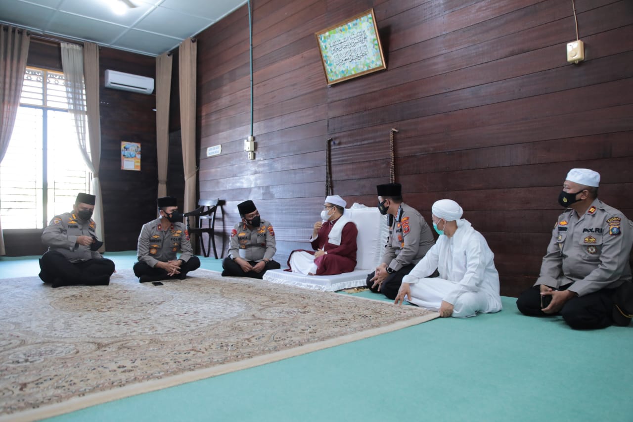 Kedatangan Kapolda Sumut didampingi Waka Polda Sumut Brigjen Pol Dadang Hartanto, PJU Polda Sumut dan Kapolres Langkat disambut hangat Tuan Guru Besilam, Syekh Dr H Zikmal Fuad, MA.