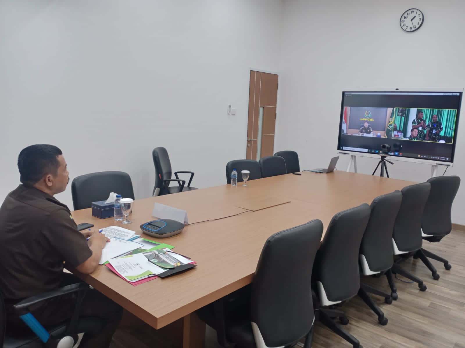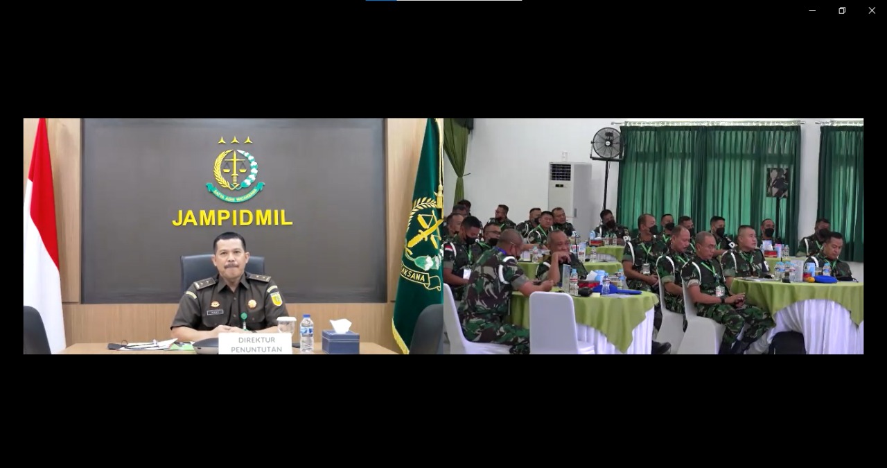 Direktur Penuntutan pada Jaksa Agung Muda Bidang Pidana Militer (Jampidmil) Agus Salim, S.H. M.H, sebagai narasumber dihadiri oleh Komandan Pusat Polisi Militer (Danpuspom) TNI Laksamana Muda Dr. Nazali Lempo, S.H., M.H., CHRMP., M.Tr. Opsla. dan 90 (Sembilan Puluh) peserta yang merupakan wakil dari tiga matra TNI.