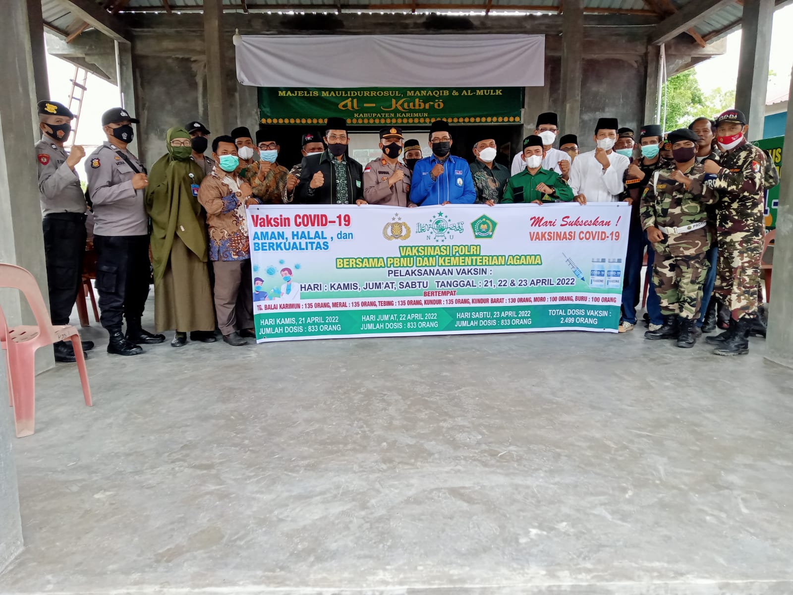 POJOKTIMES.COM | Karimun – Polres Karimun bersama Pegurus Nahdlatul Ulama dan Kementerian Agama Kabupaten Karimun menggelar program satu juta vaksin booster dari tanggal 21-23 April 2022. Vaksinasi serentak ini merupakan program kerjasama PBNU pusat, Polri dan Kementrian Agama RI, Kamis (21/4/2022).