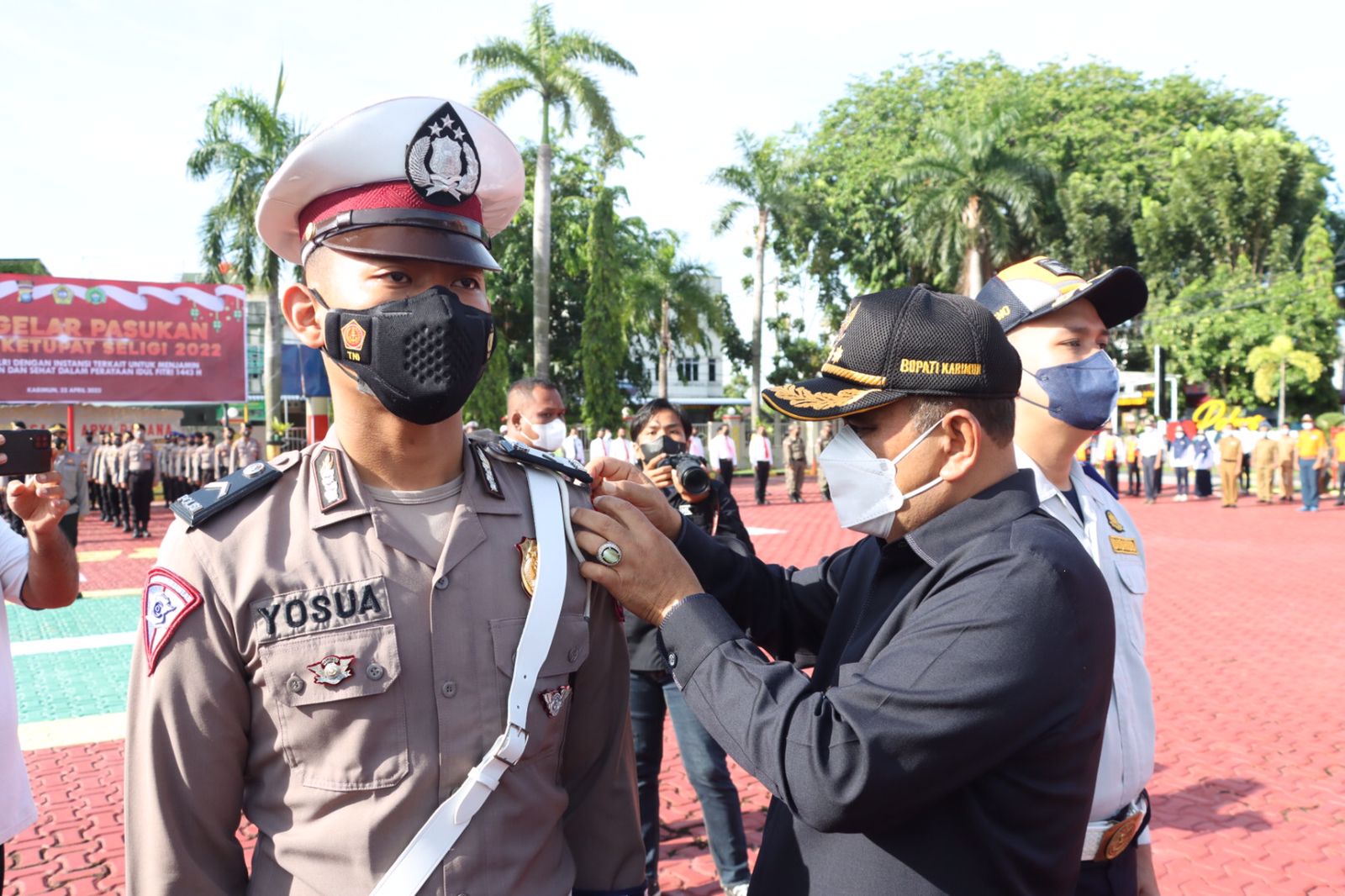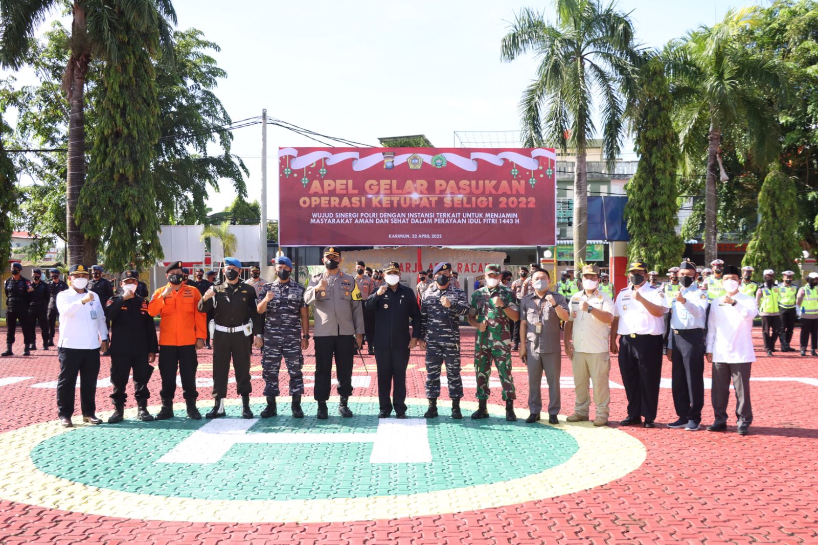 Bupati Karimun Dr.H. AUNUR RAFIQ, menyampaikan amanat Kapolri. Polri dengan dukungan dari TNI, Pemerintah Daerah, dan pemangku kepentingan lainnya menyelenggarakan Operasi “Ketupat Seligi 2022” yang dilaksanakan selama 12 hari mulai tanggal 28 April sampai dengan 9 Mei 2022