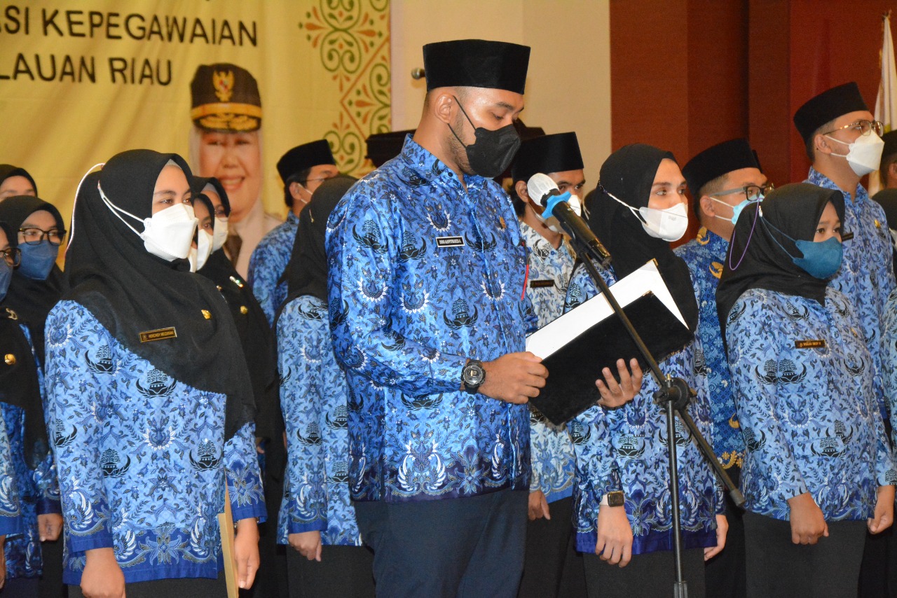 POJOKTIMES.COM | Tanjungpinang – Sebanyak 109 orang CPNS formasi tahun 2020 mengambil sumpah dan dilantik Gubernur Kepulauan Riau H. Ansar Ahmad menjadi PNS di Aula Wan Seri Beni, Dompak, Selasa (26/4). Selain itu diserahkan pula SK Pengangkatan 30 orang CPNS formasi tahun 2022 dan 381 orang PPPK Guru Tahap I disertai penandatangan perjanjian kerja PPPK dihari yang sama.
