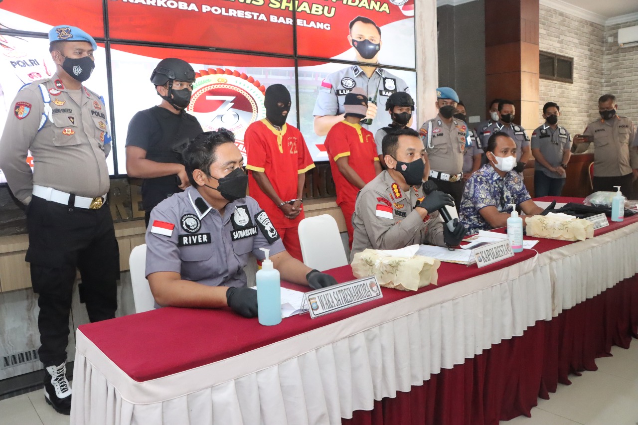 POJOKTIMES.COM | Batam – Kapolresta Barelang Kombes Pol Nugroho Tri N, SH, SIK, MH menggelar konferensi pers ungkap kasus tindak pidana narkotika jenis shabu seberat 1.018,94 Gram yang di dampingi oleh Kasat Renarkoba Kompol Lulik Febyantara, SIK, MH serta Wakasat Resnarkoba AKP River Hutajulu, S.H Bertempat di Lobby Mapolresta Barelan, Jumat (10/06/2022)
