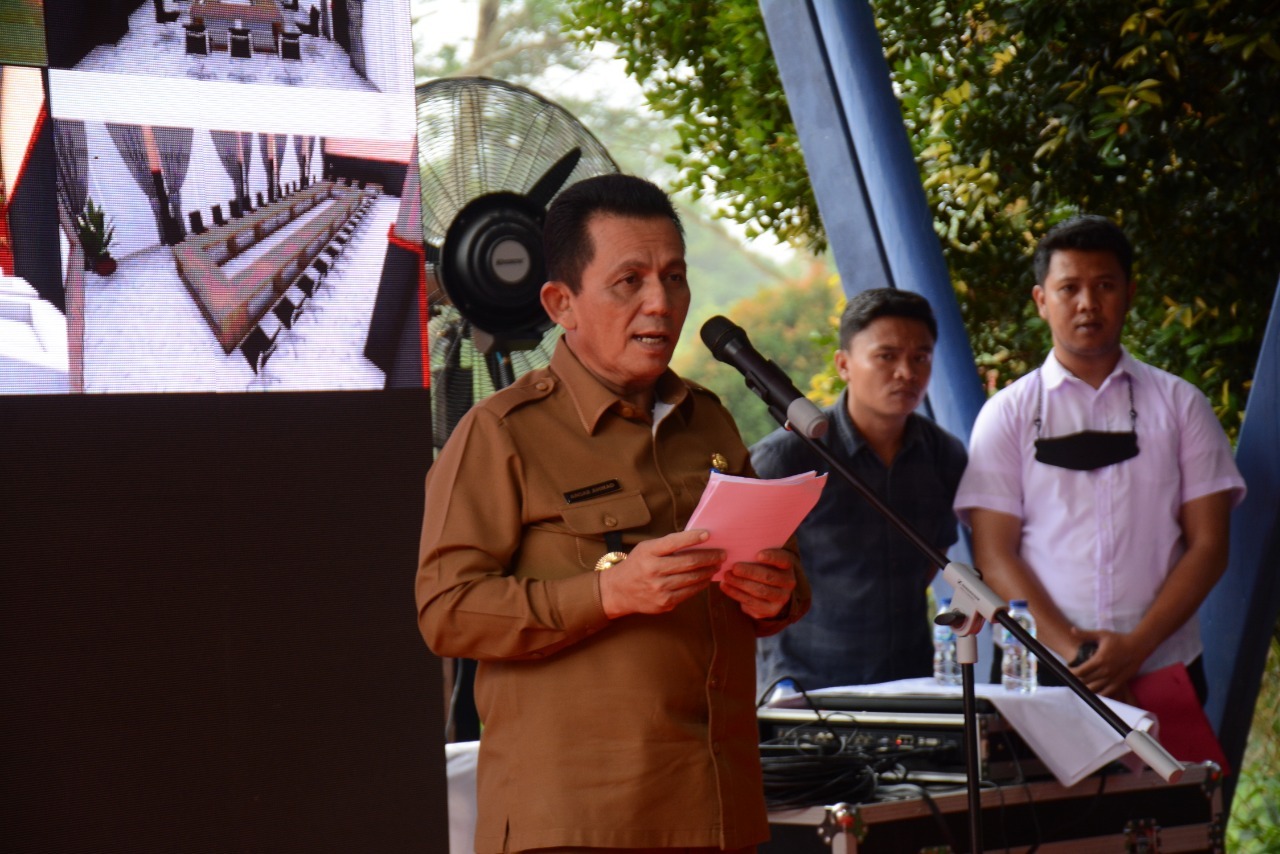 Gubernur Kepri, H. Ansar Ahmad saat memberikan sambutan pada acara peletakan batu pertama pembangunan gedung Dit Reskrimsus Polda Kepri