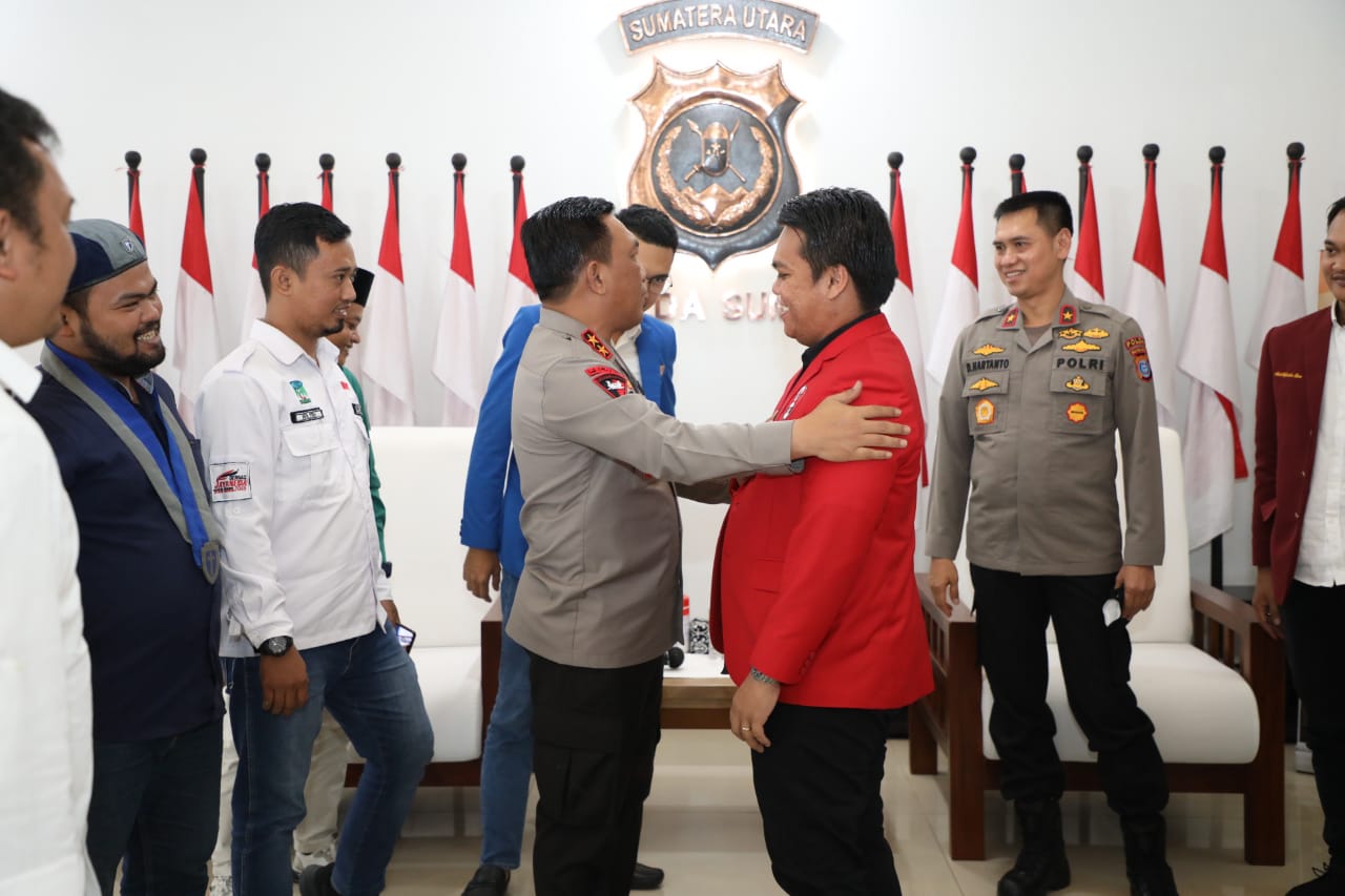 POJOKTIMES.COM | Medan – Kapolda Sumut, Irjen Pol RZ Panca Putra Simanjuntak, menerima audiensi dan silaturahim Elemen Mahasiswa Cipayung Plus di Lobbi Utama Adhi Pradana Mapolda Sumut, Senin (27/6/2022).