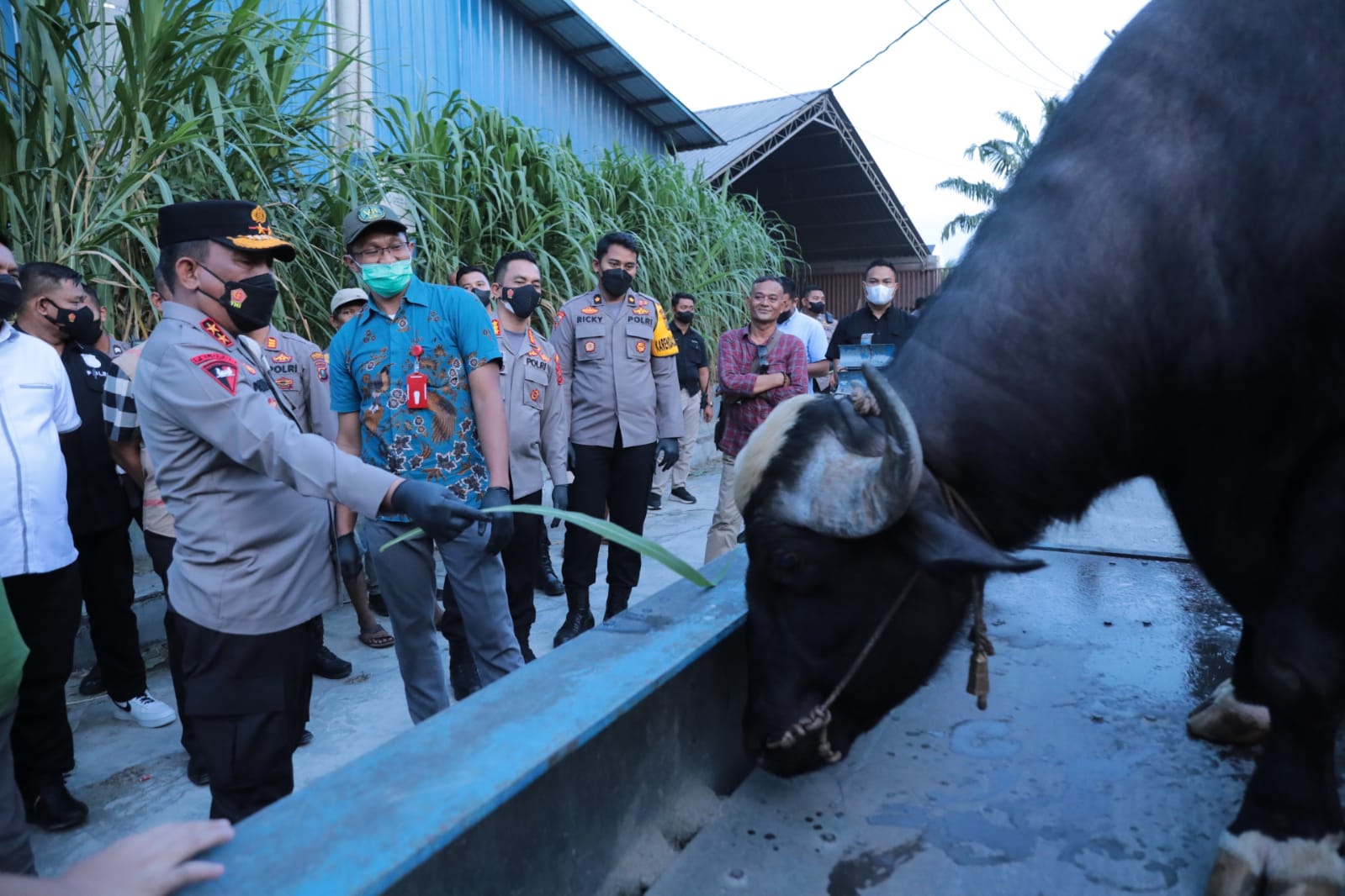 Kedatangan Kapolda Sumut bersama dokter hewan untuk mengecek kondisi hewan ternak dalam menangani wabah penyakit mulut dan kuku (PMK).