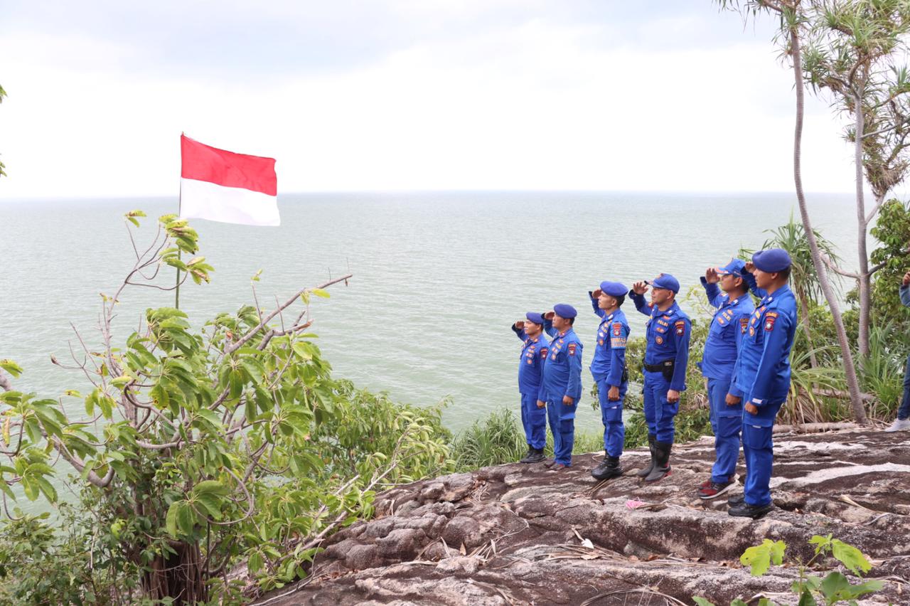 HUT RI Ke-77 Polairud Polres Karimun Kibarkan Bendera Di Pulau Terluar Indonesia