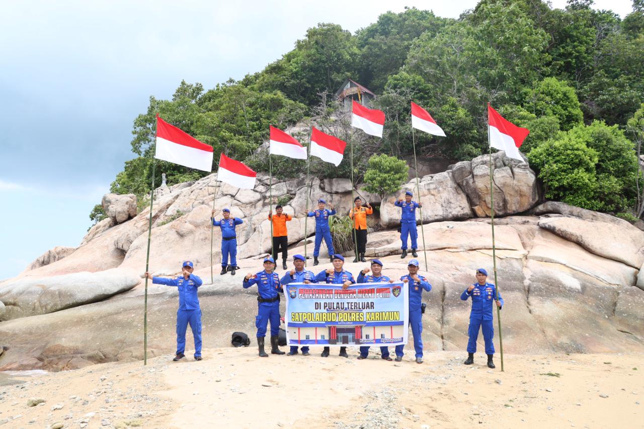 HUT RI Ke-77 Polairud Polres Karimun Kibarkan Bendera Di Pulau Terluar Indonesia