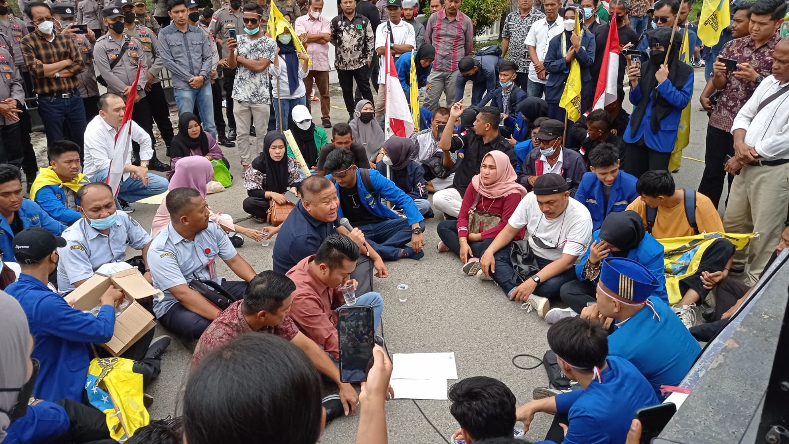 POJOKTIMES.COM | Batam – Seruan aksi menolak kenaikan harga BBM subsidi dan usut tuntas dugaan kasus penggelapan dana Koperasi Simpan Pinjam (KSP) Karya Bhakti, disuarakan Pergerakan Mahasiswa Islam Indonesia (PMII) Kota Batan dan pemuda Belakangpadang, di depan Kantor DPRD Kota Batam, Batamcentre, Kamis (8/9/2022).