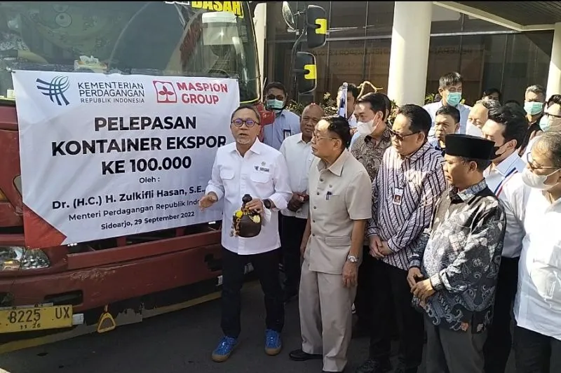 POJOKTIMES.COM | Sidoarjo – Menteri Perdagangan Zulkifli Hasan melepas ekspor produk aluminium produksi PT Maspion Group sebanyak 22 kontainer senilai 1,2 juta dolar Amerika Serikat ke enam negara.