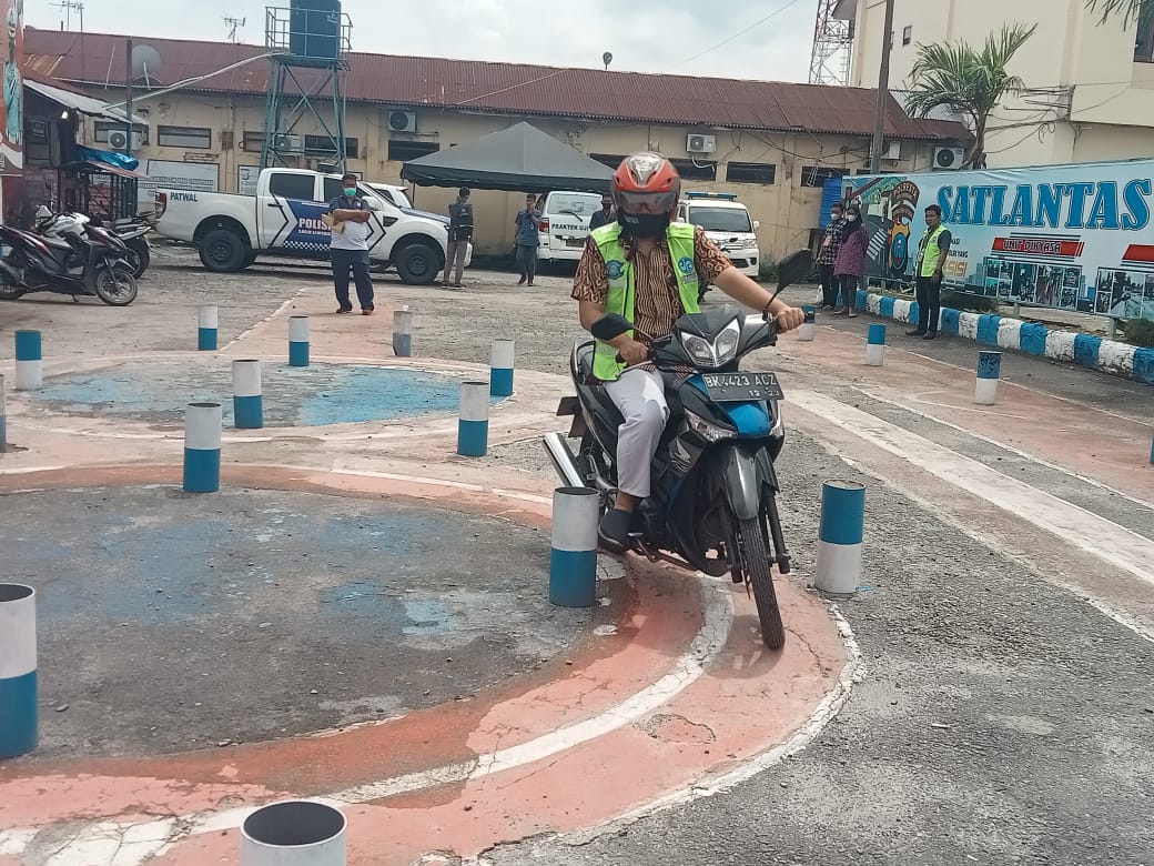 Dari amatan awak Mediapolri.id dilokasi praktik, pemohon C diuji dengan mengendarai sepeda motor dengan jalan zig-zag dan ada 8 patok yang harus dilalui.
