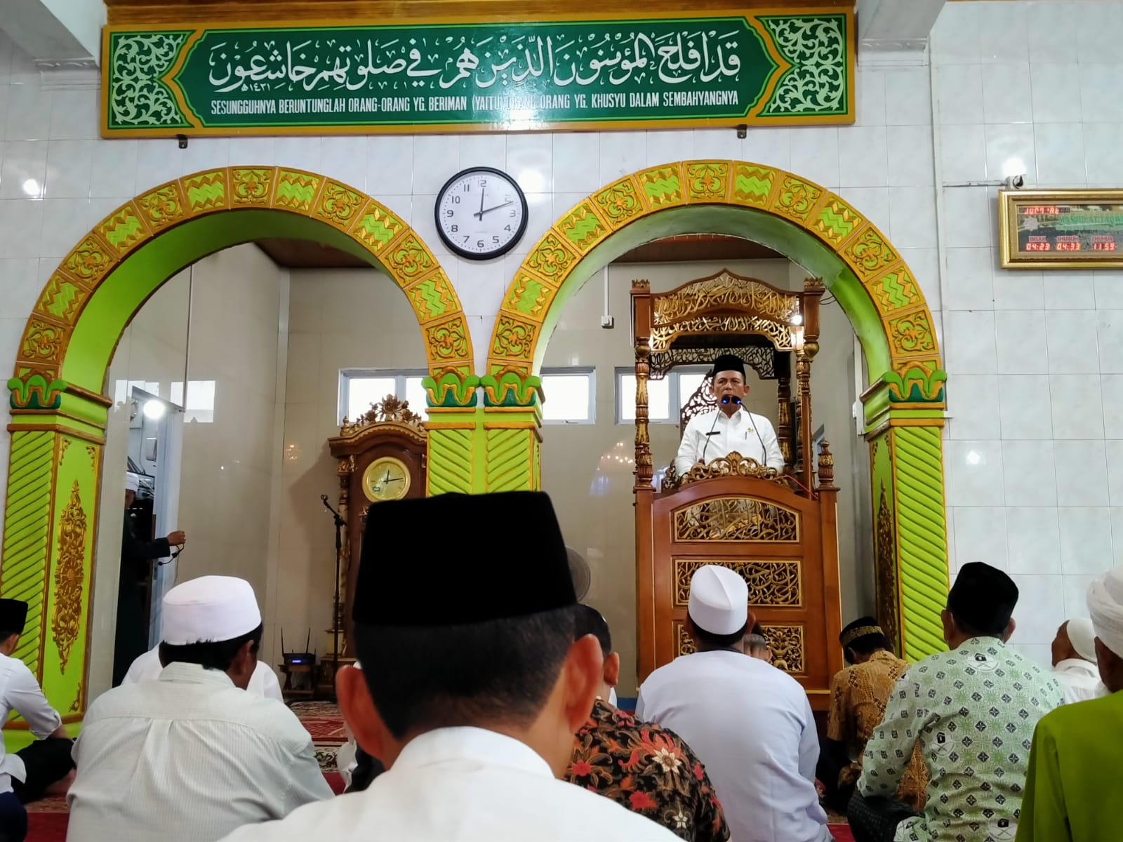 Kegiatan safari Jum’at berkah diawali dengan tausiyah duha oleh Ansar Ahmad di masjid Al-Adam. Selanjutnya, Ansar Ahmad melanjutkan safarinya sebagai khatib Jum’at yang di laksanakan di masjid AT- Taqwa dengan mengangkat tema khutbah; “Moderasi beragama untuk Negeri“.