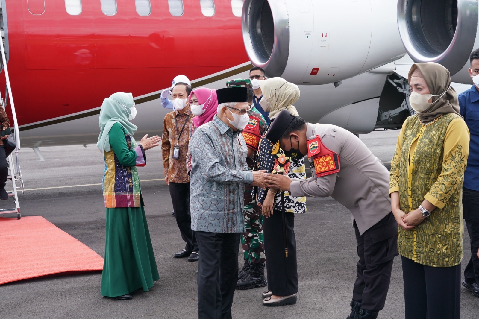 POJOKTIMES.COM | Tapanuli Tengah – Wakil Presiden Republik Indonesia Prof. Dr.K.H Ma’ruf Amin dan Ibu HJ. Wury Ma’ruf Amin serta Rombongan Tiba di Tapanuli Tengah dengan menggunakan Pesawat Kepresidenan di Bandara Udara Dr. FL Tobing Pinangsori Kec. Pinangsori Kab. Tapanuli Tengah dari Bandara Halim Perdanakusuma Jakarta, Selasa (14/2/23)