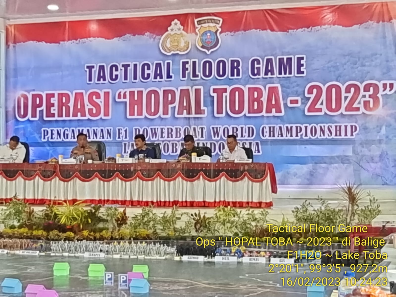 Pantauan di lokasi, pelaksanaan Tactical Floor Game yang digelar untuk menyatukan persepsi seluruh stakeholder dalam pengamanan selama event internasional F1 Powerboat di Danau Toba mulai 24-26 Februari 2023.
